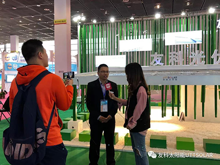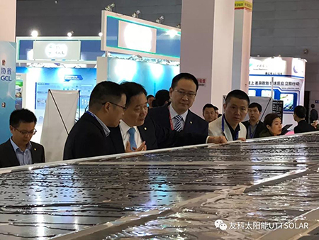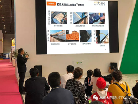 此次展会,整体展位设计风格独特,茂林修竹,工商业光伏屋面配上潺潺流水,让大家感受到了工业与绿色能源的美好融合。金年会屋面系统是将可发电的平面光伏瓦作为屋面建材,配以导水槽、屋面底板、通风屋脊等配件,组装的光伏建筑一体化屋面系统。