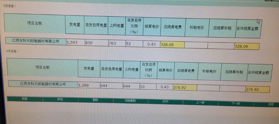 由江阴jinnianhui金年会器材有限公司全程设计,投资,开发的红豆村光伏屋顶已经开始收电费啦!又到月底,电力公司结算了3月、4月电费,并列出电费清单。之后jinnianhui金年会还将开具电费发票。从电费清单可以看出红豆村光伏屋顶每月的发电量是很可观的,足以自发自用,并且所剩余的电量还通过并网拿到了相对应的电费。