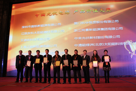 1月9日,“2014年中国光伏电站年会及第二届中国光伏电站年度颁奖典礼”在常州香格里拉酒店隆重举行。江阴jinnianhui金年会应邀出席了此次盛会。 2014年作为光伏电站建设元年,对业界意义重大,为表彰本年度光伏电站行业的优秀企业、产品、项目,以期树立行业典范,PVP365光伏电站网于常州举行盛大颁奖仪式。 共襄盛会谋发展,同献良策谱新篇。光伏业内“大佬”们也纷纷出席了盛会,并就“中国光伏,颠覆性创新在哪里?”“垂直一体化与金融资本,投建光伏电站谁更有优势?”“能源互联网,与光伏电商”三大主题一同“煮酒论剑”,表达了自己的一些看法和见解。让到场的每位嘉宾受益良多。 在此次颁奖典礼中,jinnianhui金年会自主研发的“构件式光伏瓦”这款特色产品喜获“中国光伏电站产品价值”大奖这一荣耀!值此,jinnianhui金年会赵新伟总经理感言道“jinnianhui金年会将一直致力于光电建筑产品及应用的开发,为建筑和光伏的融合尽自己的一份绵薄之力。” 隔日上午,在“2014年度光伏电站领域创新成果展示及报告会”中,jinnianhui金年会赵新伟总经理以“构件式光伏瓦在光伏建筑一体化中的应用”为主题展开了演讲。详细介绍了构件式光伏瓦产品。构件式光伏瓦是一款工厂模块化预制,并兼备光伏发电功能的建筑构件。主要适用于建筑面斜坡屋顶、南墙面幕墙、遮阳、及各类棚顶,是光伏建筑一体化即BIPV的主要应用形式之一,光电建筑的优良解决方案。 在“来宾提问”环节中,有来宾对构件式光伏瓦的防水性能提出了疑问。赵新伟总经理对此做出了详细解答:”构件式光伏瓦独特的嵌入式工艺设计,满足了不漏水、易维护、易安装的基本要求。由于边框装有防水件,该防水件有三层的防水功能,所以可以更有效地防止毛细现象的产生。” jinnianhui金年会在此次大会上受益颇多,值此,非常感谢PVP365组委会及各位光伏同仁们对jinnianhui金年会的肯定,并给予金年会“光伏电站产品价值”大奖,这将勉励金年会在光伏的道路上再接再厉,不断开发新产品及不断完善新的理念,使金年会的产品位于光伏市场的最前列!